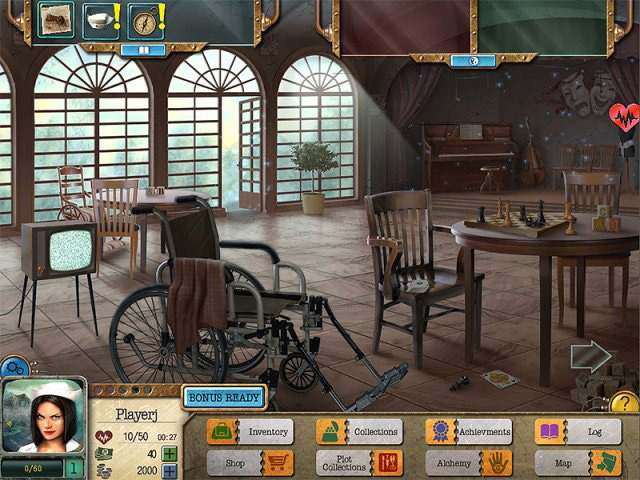 You're stranded at a haunted asylum by a road blockage, and there are creepy mental patients (Or ghosts?) who ask you for things. You earn points and bux and other stuff by completing HOG and sometimes you randomly 'find' other items, mostly worthless but sometimes pieces you need to solve steps along the story line (like the pieces to put together a telephone) or those for a collection (like a figurine of a nurse? I've put together two) which I don't know if they do anything or what. Also there are maniacs and clowns and whatever roving about who 'curse' you in various ways, which you can kill but it takes like 800 points each time.