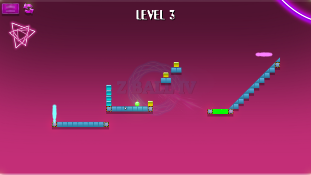 Blocks can have different powers - some can be destroyed when colliding with other objects or from an explosion, some are monolithic but mobile, some can mve the green ball. Most often, there is no specific algorithm of actions, you should rely only on your intuition to solve the problem. Platforms interact with objects in different ways. For example, there are platforms that make round objects roll in a certain direction. There are transparent platforms that are divided into colors and can only interact with objects of their own color.There are game levels of different difficulty and types. Some levels require dexterity and reaction, some will require patience and caution, others will make you think about the sequence of actions.
